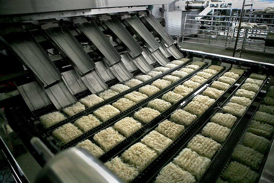冷卻后的米粉被自動(dòng)切斷成設定的大小,切口整齊,重量穩定,面塊寬度及長(cháng)度可以調節;