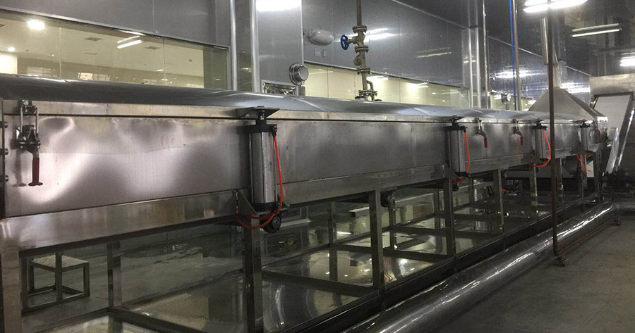 In order to absorb enough water, the extruded noodle falls into boiling water directly after extrusion.  To keep the related water temperature in the process of cooking, the tank is equipped heating and temperature control system.